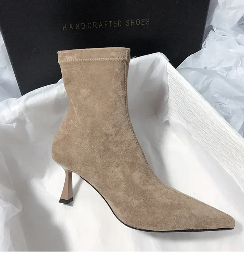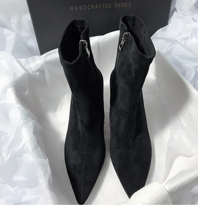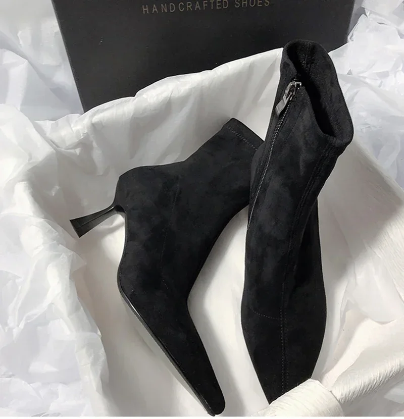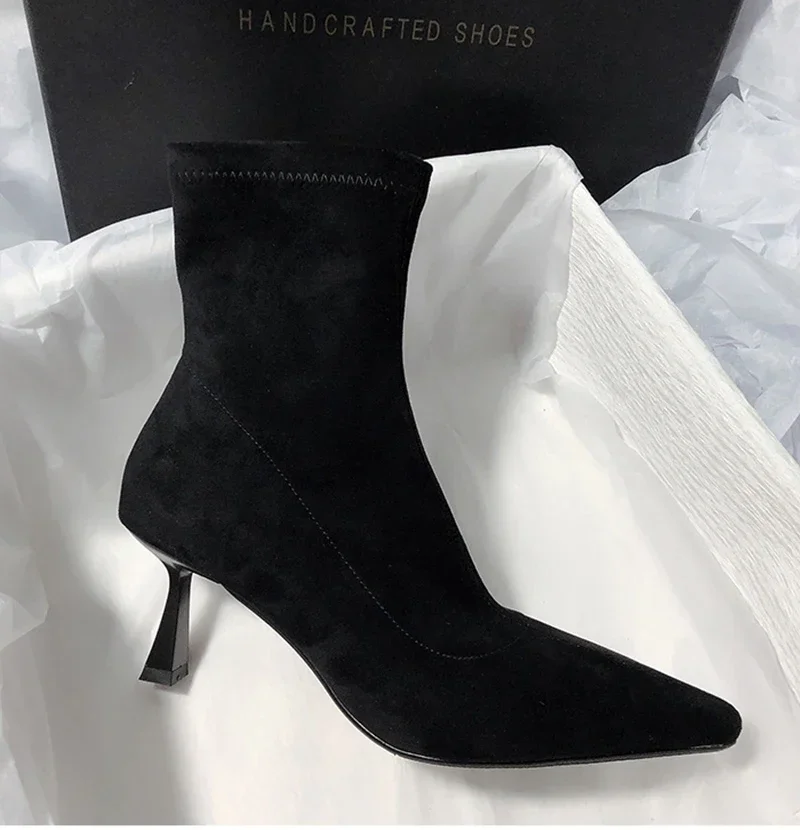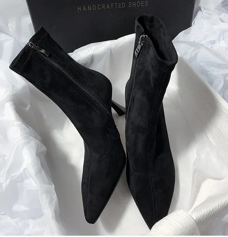 Pointed Toe Sock Short Boots Fashion Side Zipper  Ankle Booties Thin High Heel Autumn Winter Ladies Shoes