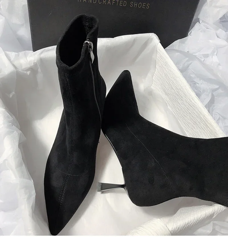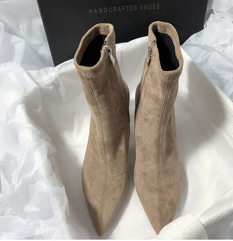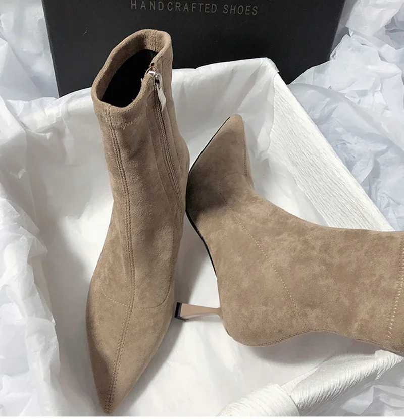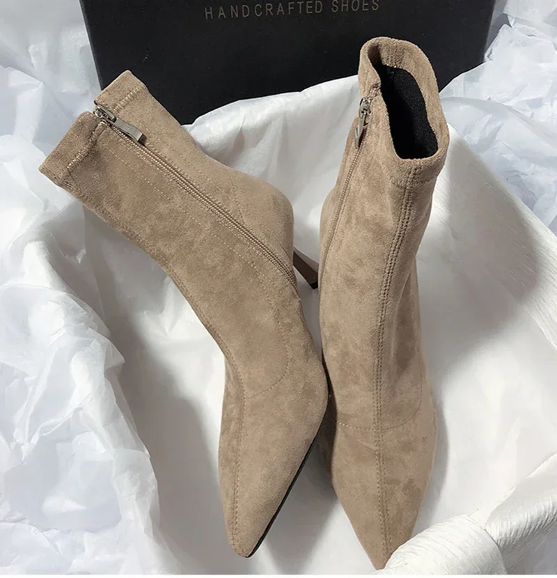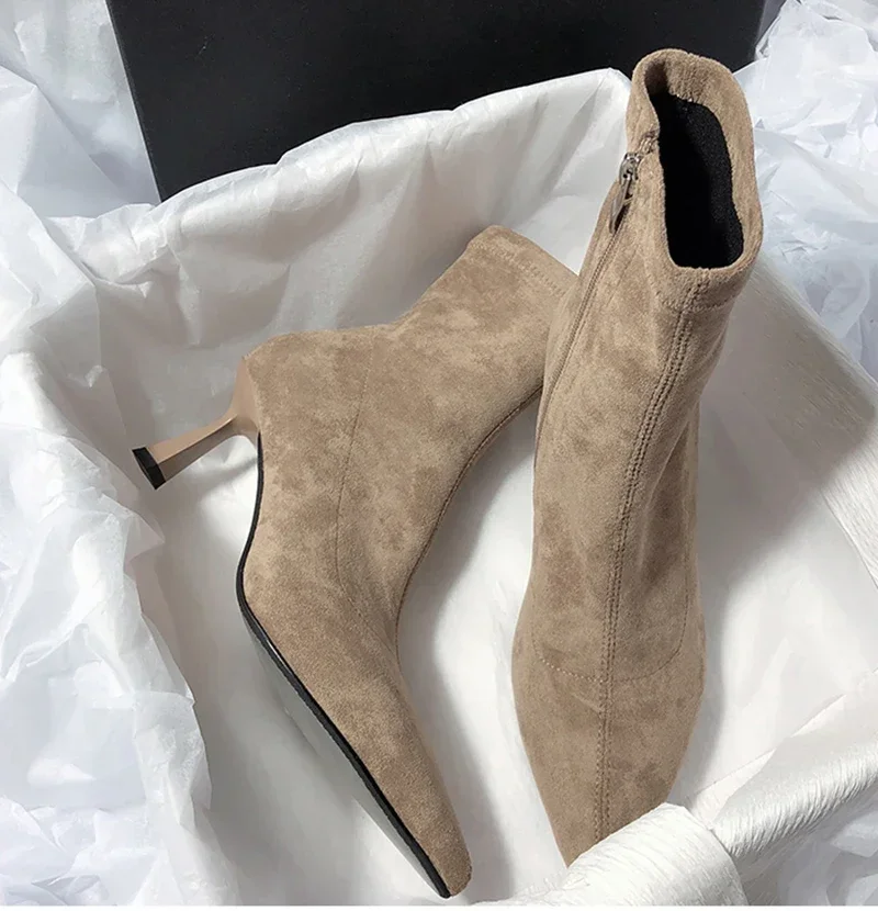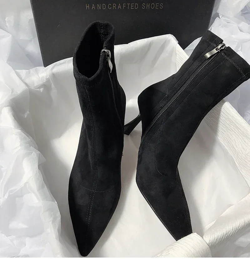 Pointed Toe Sock Short Boots Fashion Side Zipper  Ankle Booties Thin High Heel Autumn Winter Ladies Shoes
