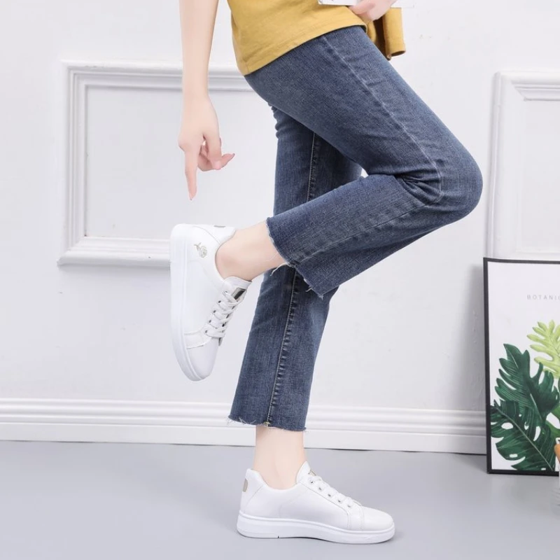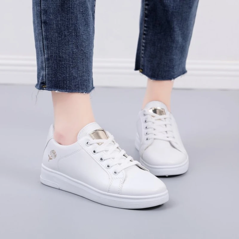 Shoes 2025 Women Running Spring Autumn Fashion White Breathable Embroidered Flower Lace-Up Casual Sneakers Zapatos De Mujer